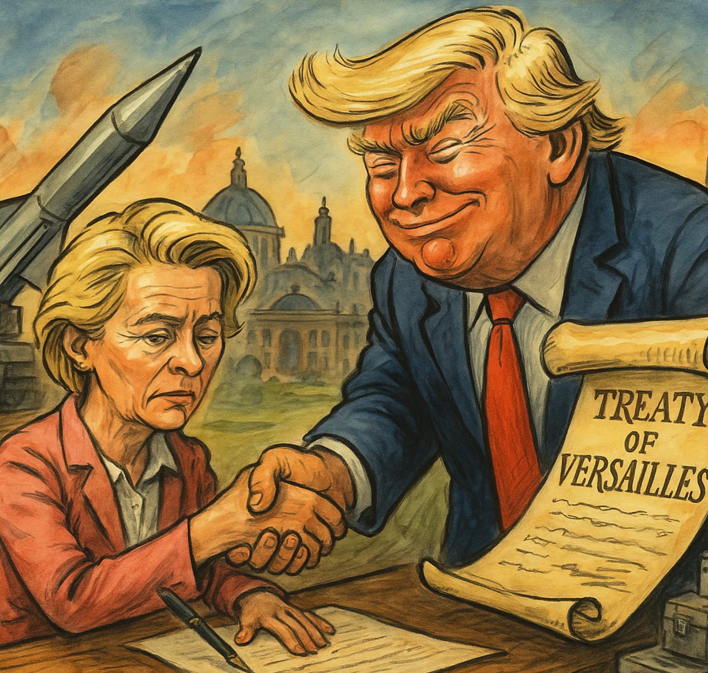 A hundred years ago, Europe endured the trauma of total war before being shackled by the Treaty of Versailles. This time, the Western half skipped the fighting and walked straight into the treaty. No tanks or trenches were needed. Just a 40-minute meeting, a handshake, and the imposition of terms by a smiling representative of a foreign power.