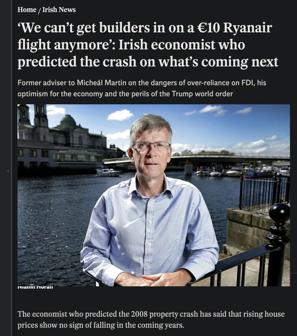 In one moment of surreal detachment, he recalls how, during the Celtic Tiger, “builders would fly in, pay €10 for a Ryanair flight… gangs of them… and then head back at the weekend. That’s all gone.” Now, he says wistfully, “those builders are in Poland where wages have risen… So that supply of labour is not available anymore.”