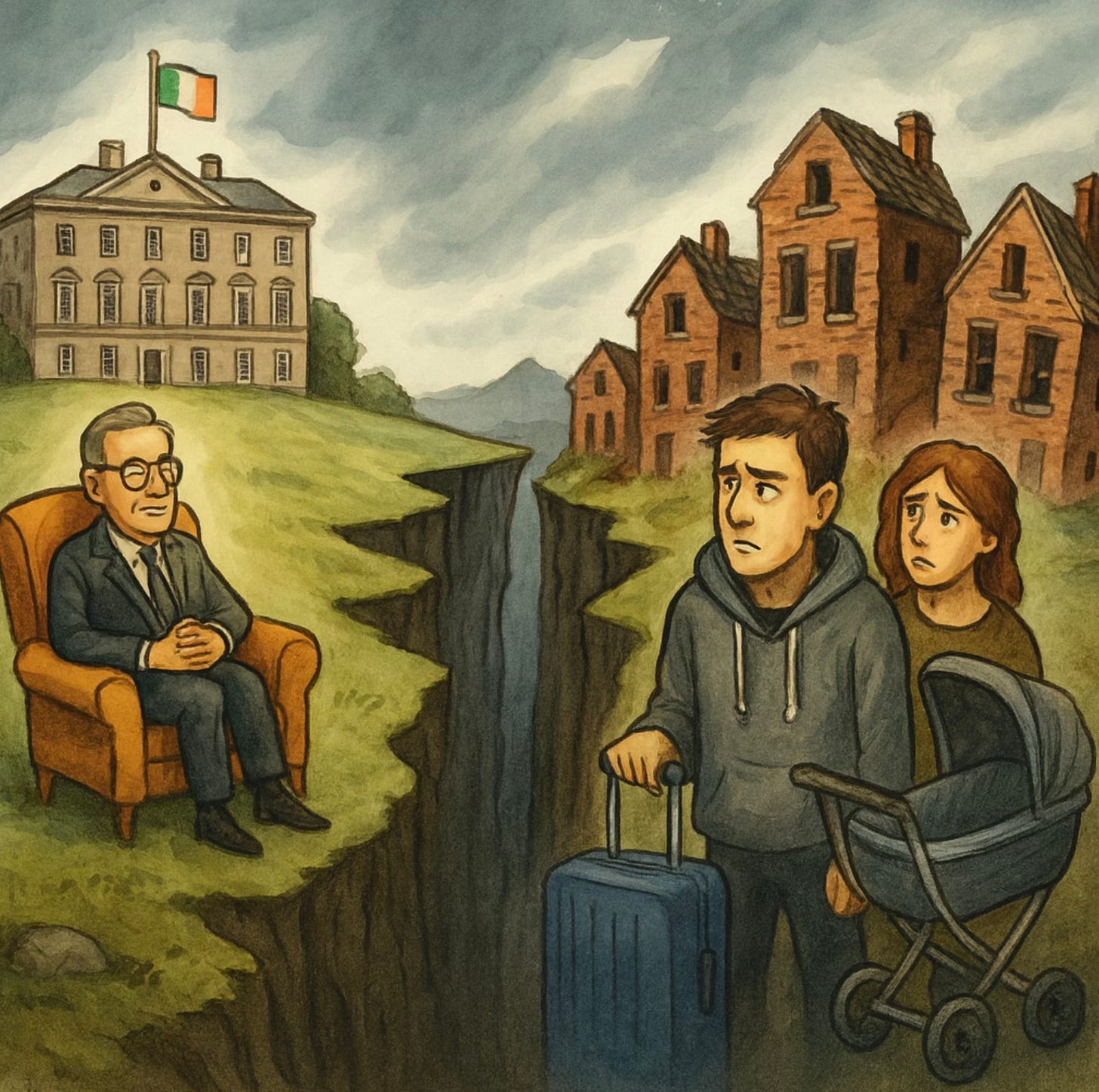 Because what’s playing out is more than market imbalance. It’s a long-term unravelling of the social contract. People aren’t having children. Couples aren’t marrying. Emigration is rising. Cynicism is deepening. The sense that Ireland is a country you might visit but can no longer afford to inhabit is becoming gospel among the Wild Geese scattered around the planet.